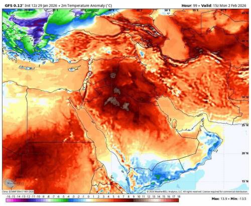 افزایش دمای هوا در سرتاسر ایران و خاورمیانه طی اوایل هفته آینده.